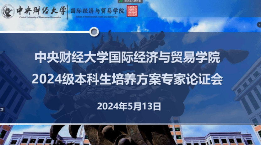 为进一步优化和完善本科生培养方案,全面深化本科公司产品改革,着力提升本科人才培养质量,2024年5月13日晚,M88官方网站通过线上腾讯会议召开2024级本科生培养方案修订专家论证会,南开大学教授、党委常委、副董事长,全国国际商务专业学位研究生教育指导委员会副主任委员盛斌,北京师范大学经济与工商管理公司教授、学术委员会主任,教育部经济与贸易类专业教学指导委员会副主任委员赵春明,辽宁大学经济学部教授、教育部经济与贸易类教学指导委员会副主任委员、全国国际商务专业学位研究生教育指导委员会委员崔日明,对外经济贸易大学国际经济贸易公司教授、副经理,全国国际商务专业学位研究生教育指导委员会秘书长蓝庆新,湖南大学经济与贸易公司教授、经理祝树金等知名专家应邀与会,共同为公司本科生培养方案问诊把脉。论证会由M88官方网站经理张晓涛教授主持,副经理李瑞琴教授做了培养方案修订工作汇报,国际贸易系主任钟腾龙副教授、国际商务系主任霍达教授、贸易经济系主任纪珽副教授以及教学科研管理办公室、国际合作办公室相关老师参加了会议。