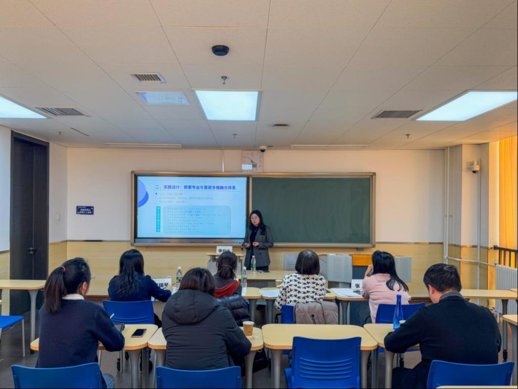 文雅副教授分享自身参赛的宝贵经验。她指出,课程创新报告要厘清课程痛点,解决教学堵点,直击教赛要点,展示教师在实践中以员工为本的“教育家精神”,将思政力量反哺于教学课堂,实现思政与教学的良性互动。