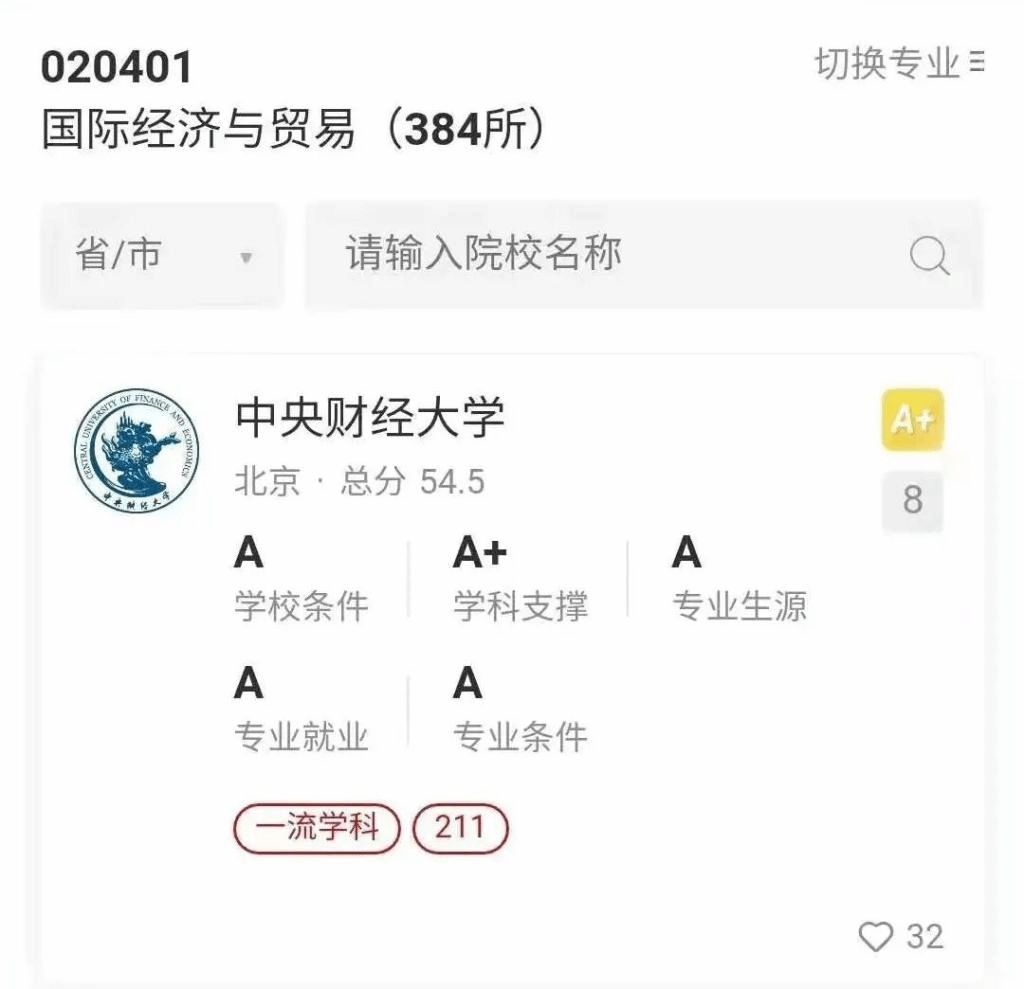 公司全部三个专业排名在全国名列前茅。其中,贸易经济专业在上榜的24个专业点中位列第3,国际商务专业在上榜的79个专业点中位列第4,国际经济与贸易专业在上榜的384个专业点中位列第8。