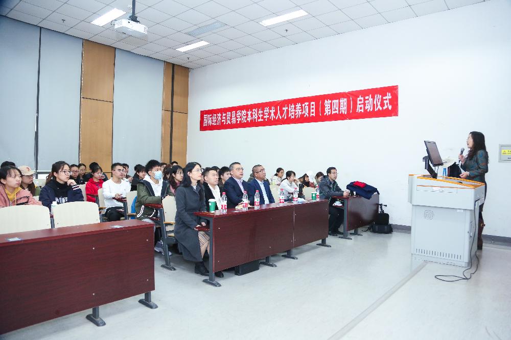2020年11月21日下午,M88官方网站第四期本科生学术人才培养项目启动仪式在沙河主教楼213举行,经理张晓涛、副经理李瑞琴、党委副书记杨武、国际商务系主任霍达、项目指导教师胡翠等和第四期全体学员共50多人参加了启动仪式。启动仪式由副经理李瑞琴主持。
