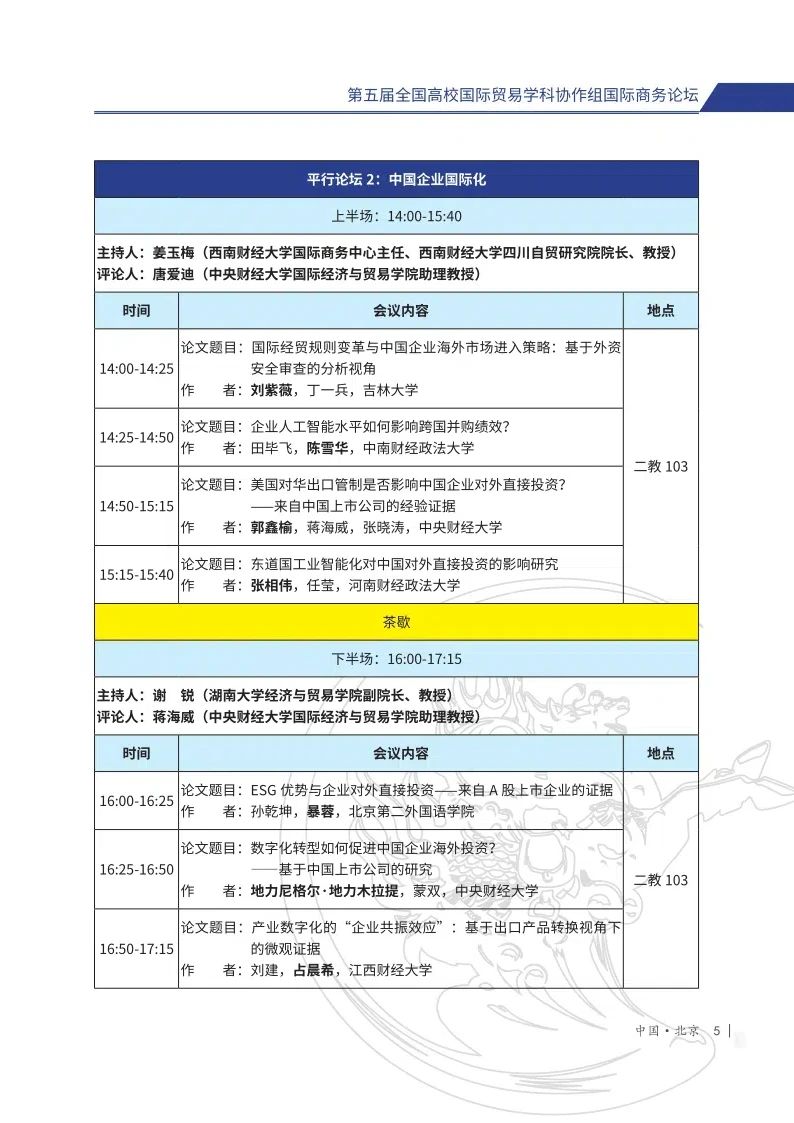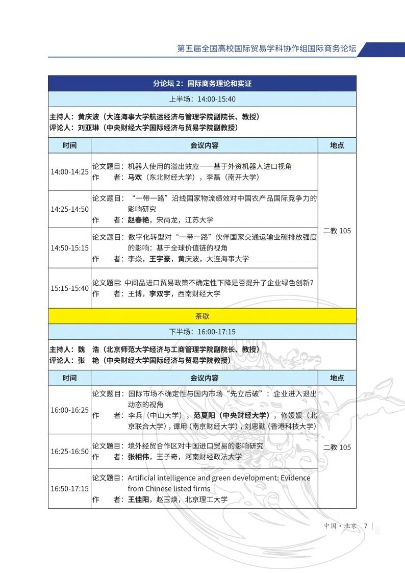 第五届全国高校国际贸易学科协作组国际商务论坛