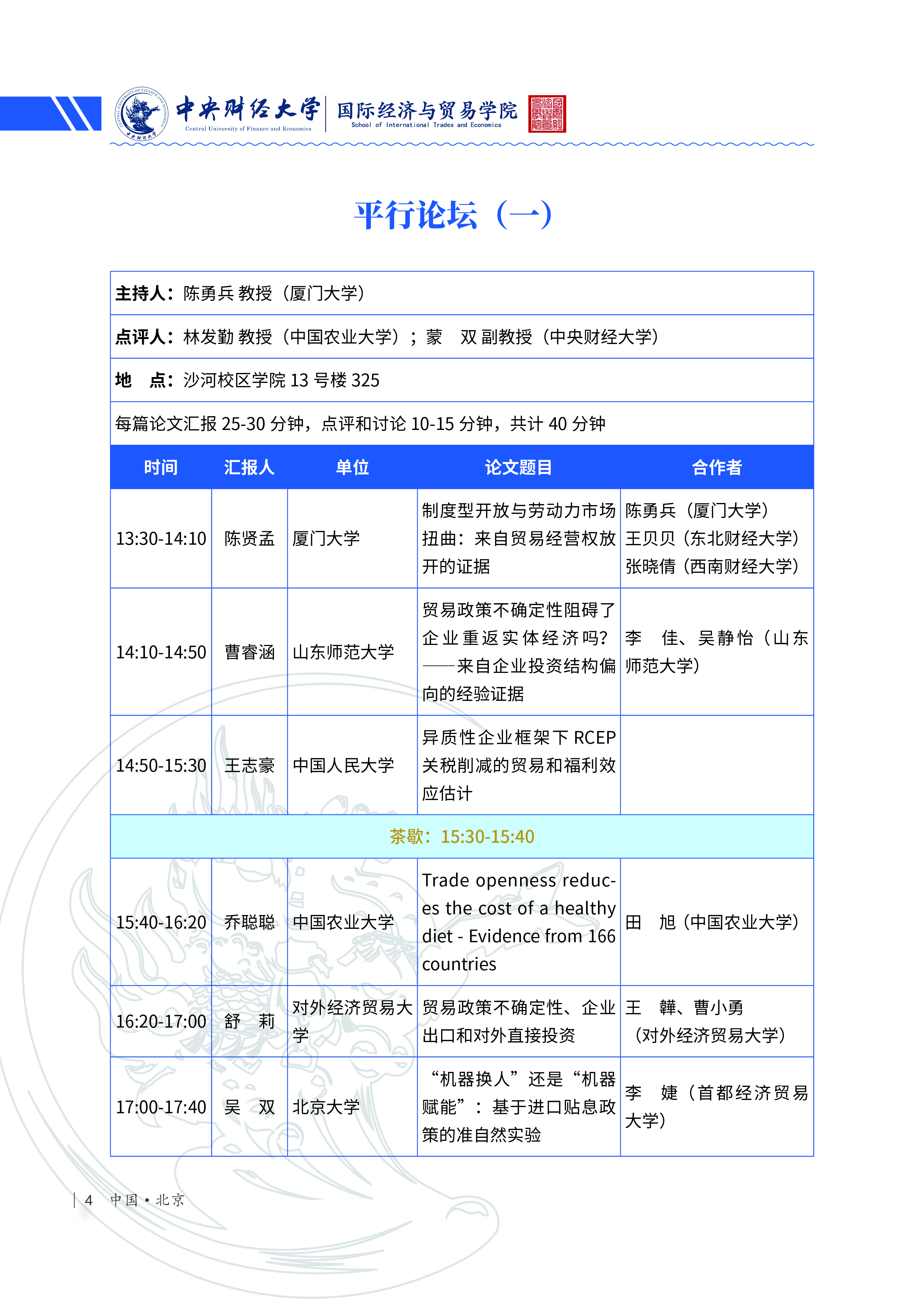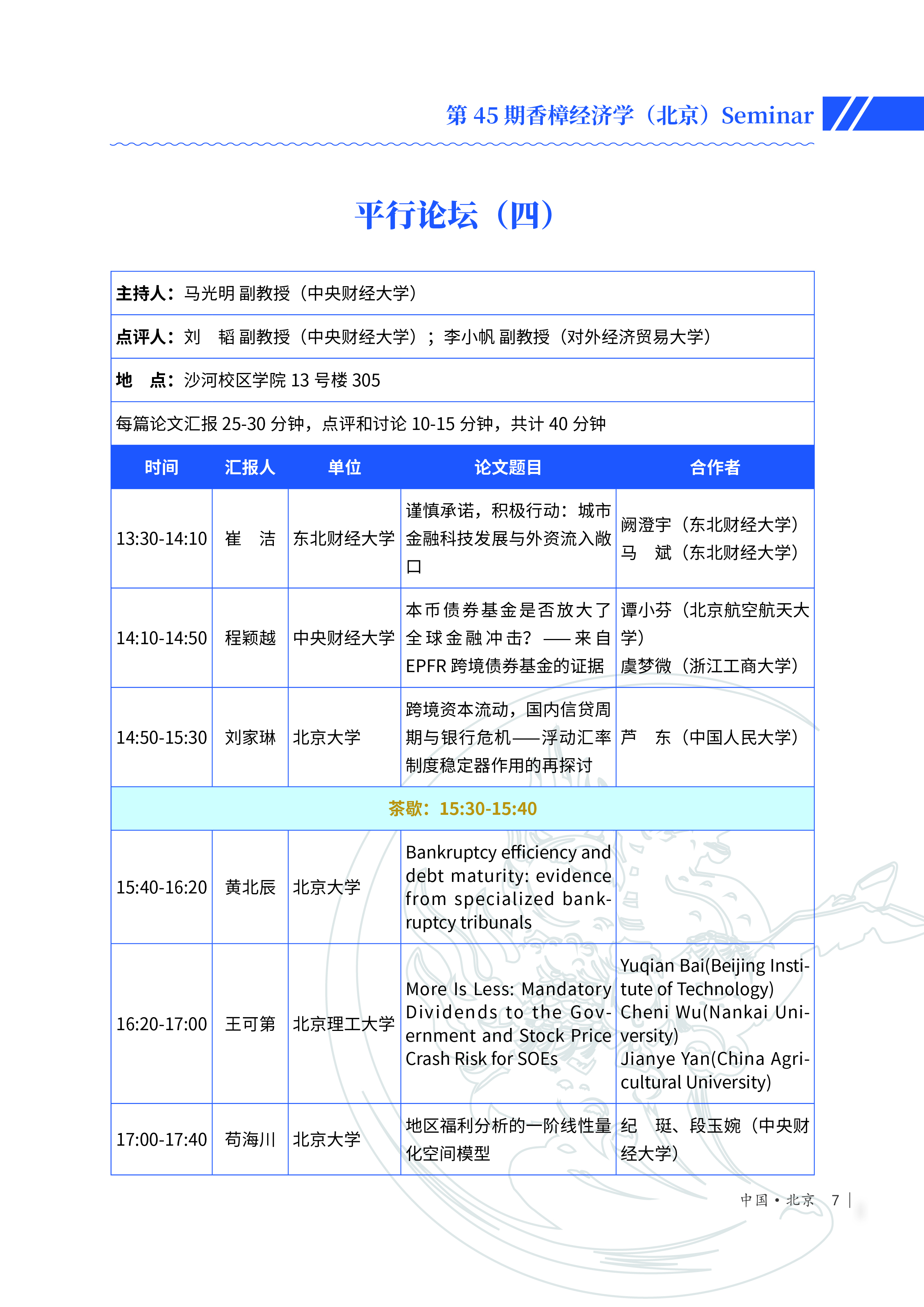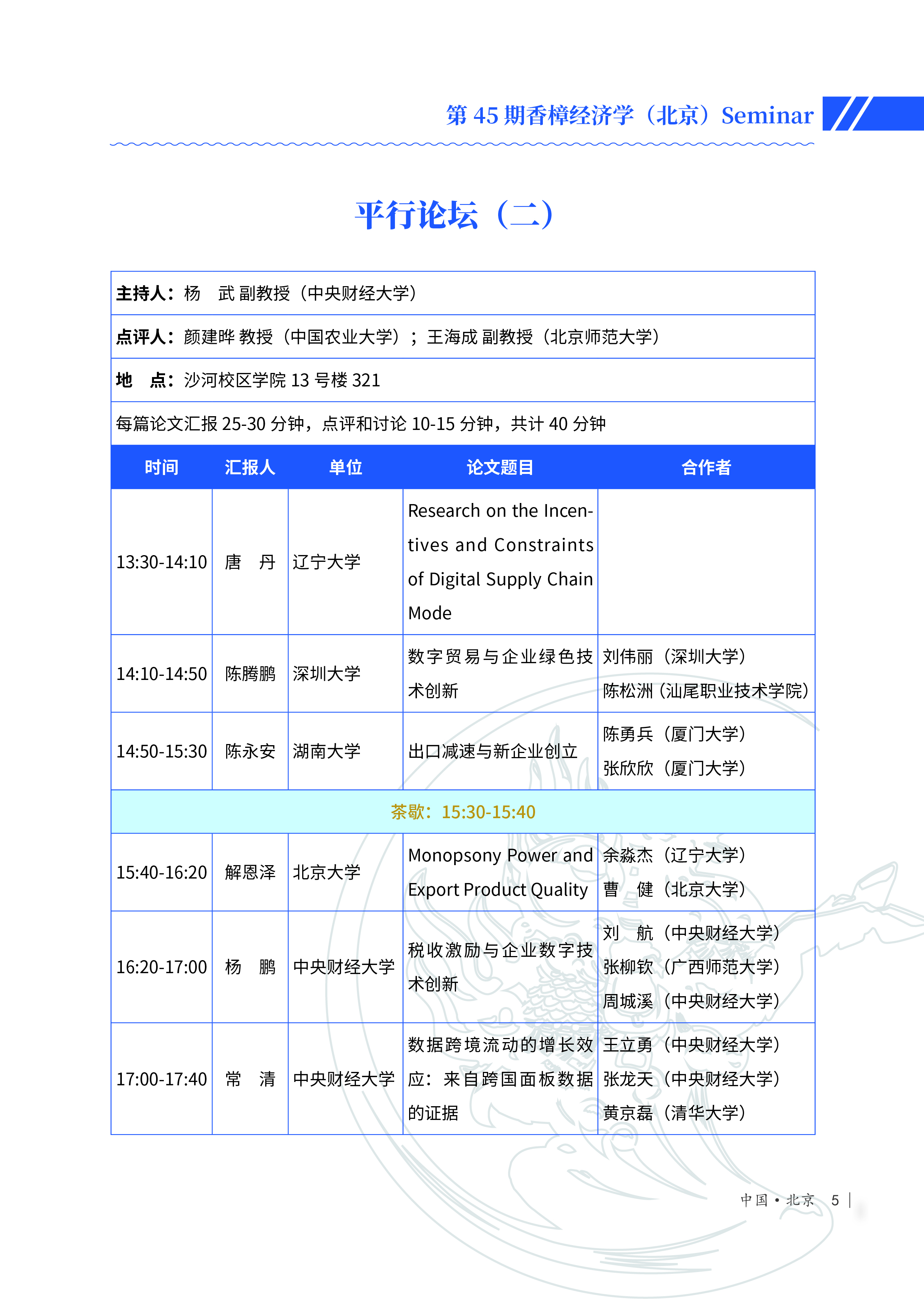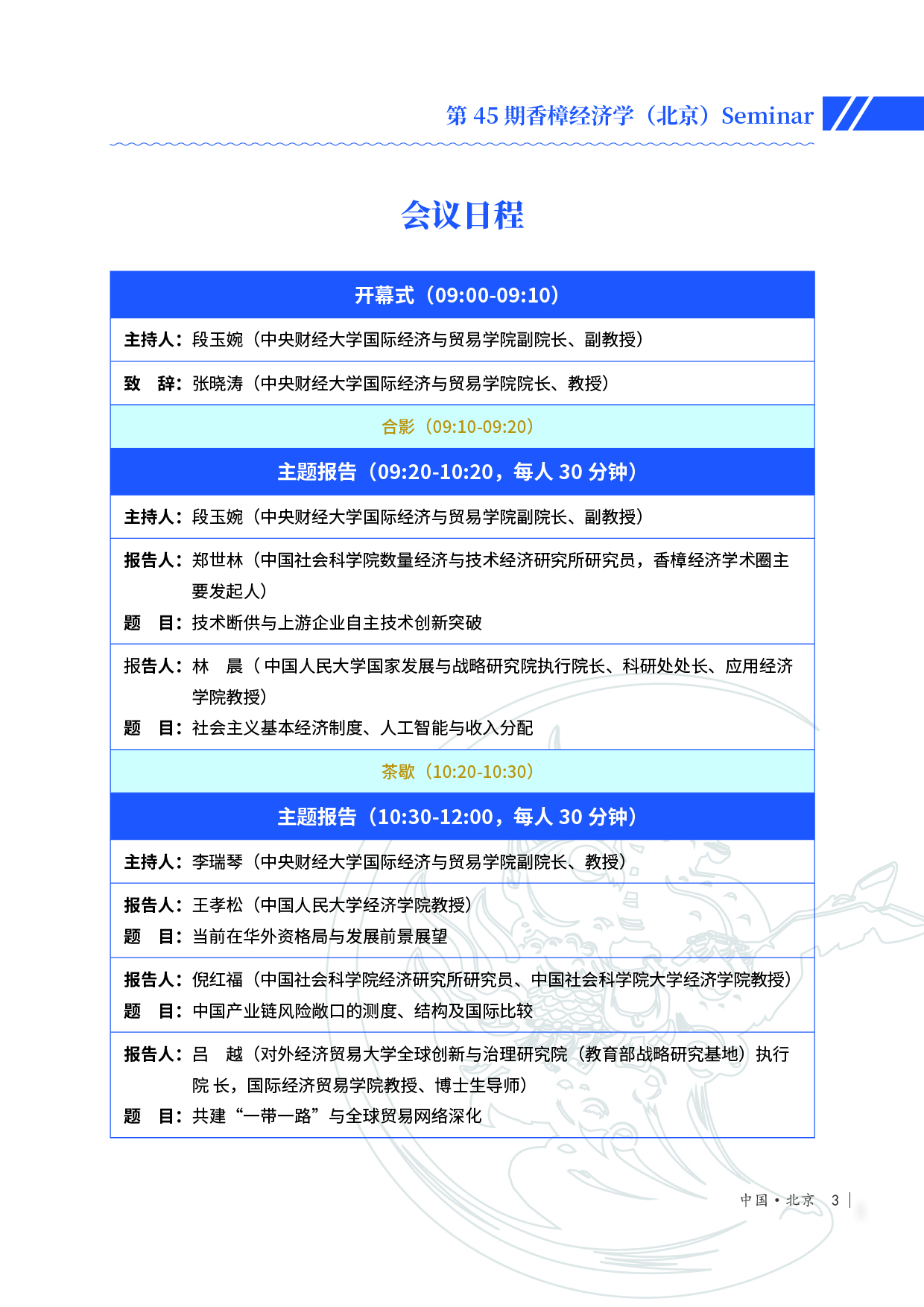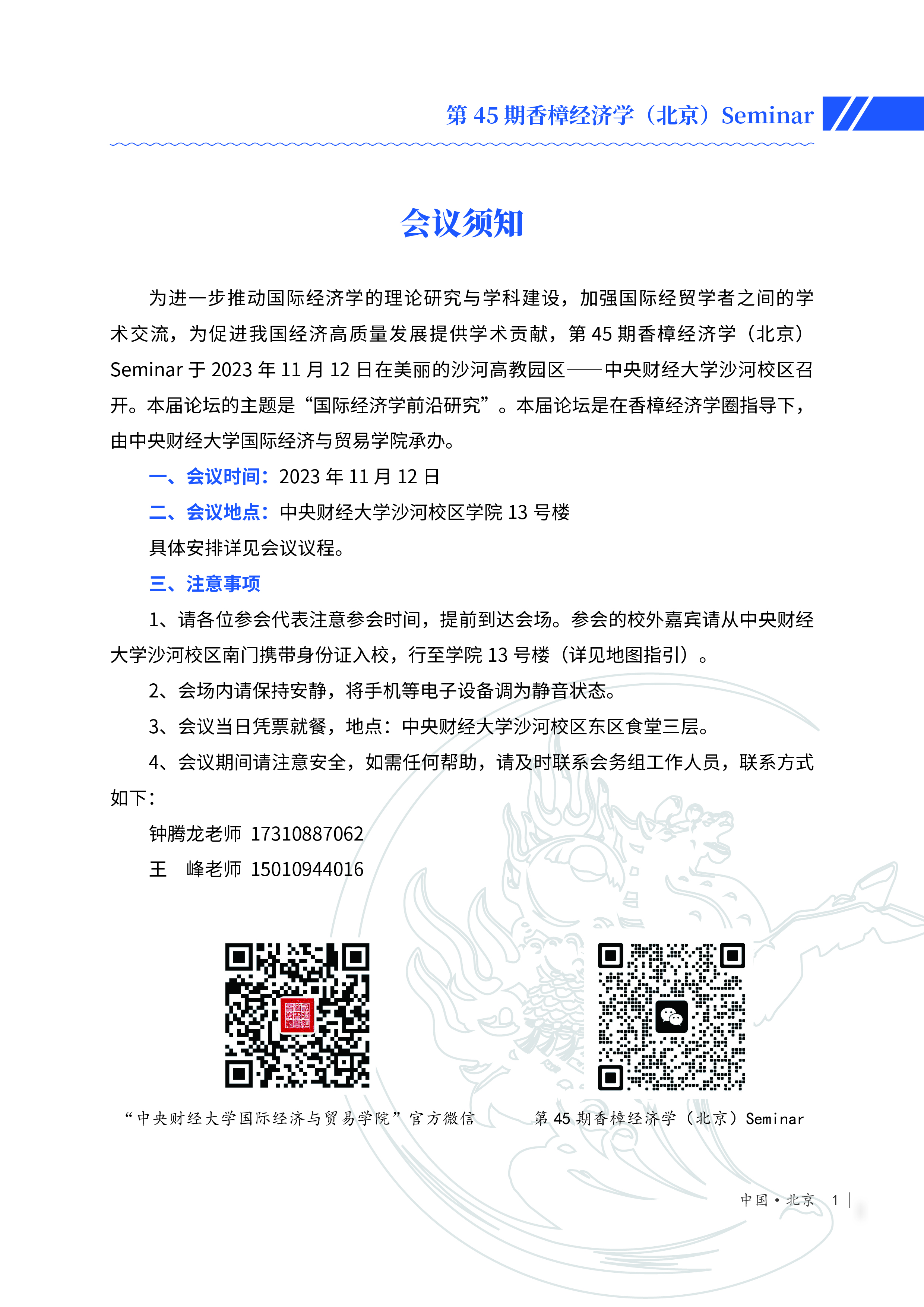 第45期香樟经济学(北京)Seminar——国际经济学前沿研究