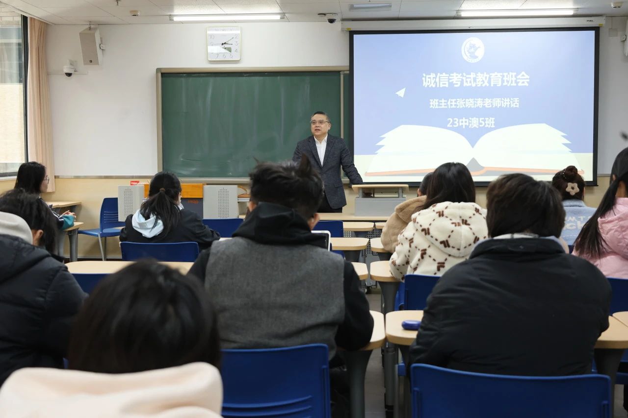 为深入学习贯彻党的二十大精神,增强学习贯彻习近平新时代中国特色社会主义思想主题教育实效性,进一步打造公司“三环协同、六维贯通” 的育人格局,加强学风建设,端正期末考风考纪,树立诚信意识,12月1日至12月15日,公司领导班子、班主任、辅导员深入班级开展考风考纪诚信教育活动。