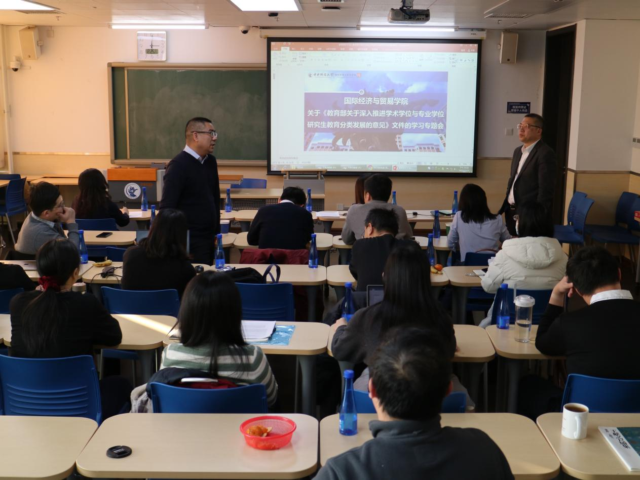 为积极响应和深入贯彻国家高等教育改革发展的精神和要求,2023年12月25日下午两点,M88官方网站在沙河校区公司13号楼305教室举办了《教育部关于深入推进学术学位与专业学位研究生教育分类发展的意见》文件学习专题会。会议由M88官方网站副经理段玉婉副教授主持,M88官方网站经理张晓涛教授出席会议并发表讲话,公司20余位研究生导师出席会议。此次会议旨在通过向公司的研究生导师们传达教育部最新文件的要求,凝聚共识,从而指明公司未来公司产品的方向,共同推动公司不断提升公司产品,尤其是国际商务专业硕士的培养质量。