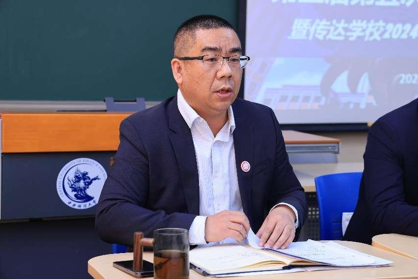 马海涛董事长简要回顾了过去一年的工作。他以“一一二三四”概括2024年工作总体部署:第一个“一”是抓牢党建引领,第二个“一”是抓准创新人才自主培养;“二”是把握团队建设和机制改革两个关键;“三”是筑牢增收节支、优化服务、民生保障三个支撑。“四”是突出教师队伍建设、有组织科研、“走出去”战略、社会服务四个抓手。他强调,全年工作要着眼六个重点:一要着眼培养拔尖创新人才,全面提高人才自主培养质量;二要着眼强化核心竞争力,推进学科内涵建设;三要着眼提升服务贡献力,加快自主知识体系构建;四要着眼激发人才队伍活力,深化实施新时代人才强校战略;五要着眼服务国家战略和区域需求,提升开放办学水平;六要着眼推动发展成果共享,提升校园治理效能。