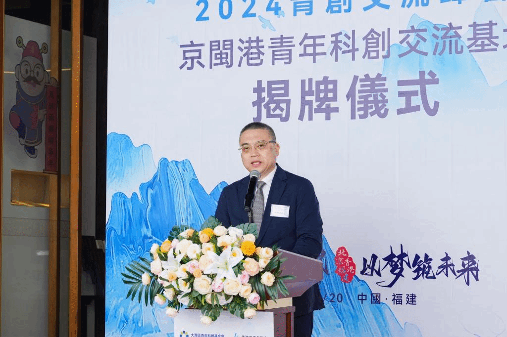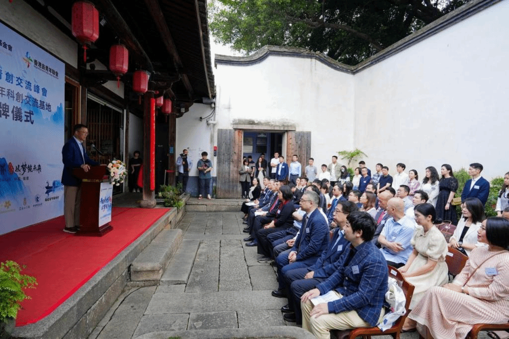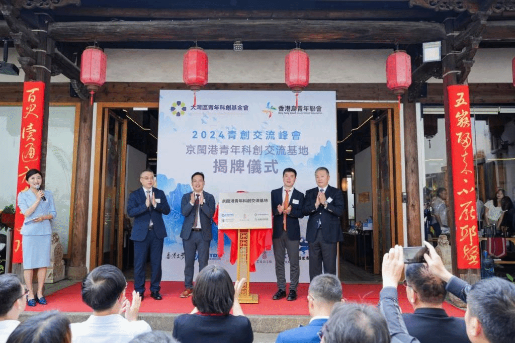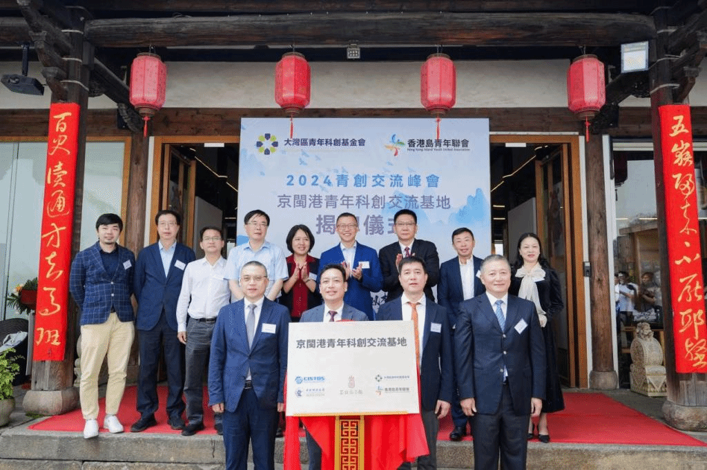 在主办方和主理嘉宾开幕致辞结束后,进入京闽港青年科创交流基地(青创基地)的揭牌环节,该青创基地由青创会、港岛青联、首科院、M88官方网站以及严复翰墨馆共同发起设立,通过在福州三坊七巷严复翰墨馆挂牌设立青创基地,旨在便利后续常态化和定期化促进京闽港三地青年的科创交流。