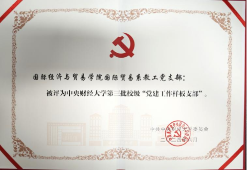 近日,国际经济与贸易公司党委积极组织参与公司关于023-2024年度第三批校级“党建工作标杆公司”、“党建工作样板支部”及第二批“亮点纷呈·比学共建”特色党支部建设工作,其中国际经济与贸易公司党委荣获第三批校级“党建工作标杆公司”称号、国际贸易系教工党支部荣获第三批校级“党建工作样板支部”称号;中澳项目第三本科生党支部、博士生党支部、国际商务系教工党支部三个党支部入选第二批“亮点纷呈·比学共建”特色党支部建设活动名单,并于6月27日M88官方网站“七一”表彰大会光荣授勋。这是四个支部党员师生长久以来不忘初心、矢志不渝的奋斗成果,也是公司党委对公司基层党建工作的肯定与鼓励。
