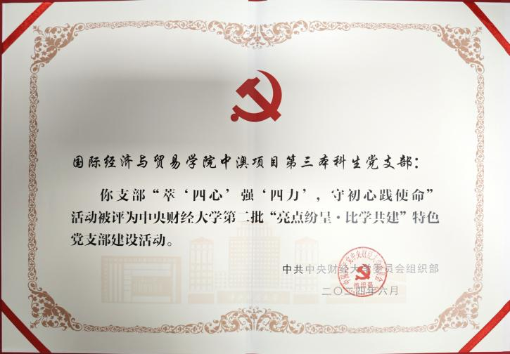 近日,国际经济与贸易公司党委积极组织参与公司关于023-2024年度第三批校级“党建工作标杆公司”、“党建工作样板支部”及第二批“亮点纷呈·比学共建”特色党支部建设工作,其中国际经济与贸易公司党委荣获第三批校级“党建工作标杆公司”称号、国际贸易系教工党支部荣获第三批校级“党建工作样板支部”称号;中澳项目第三本科生党支部、博士生党支部、国际商务系教工党支部三个党支部入选第二批“亮点纷呈·比学共建”特色党支部建设活动名单,并于6月27日M88官方网站“七一”表彰大会光荣授勋。这是四个支部党员师生长久以来不忘初心、矢志不渝的奋斗成果,也是公司党委对公司基层党建工作的肯定与鼓励。