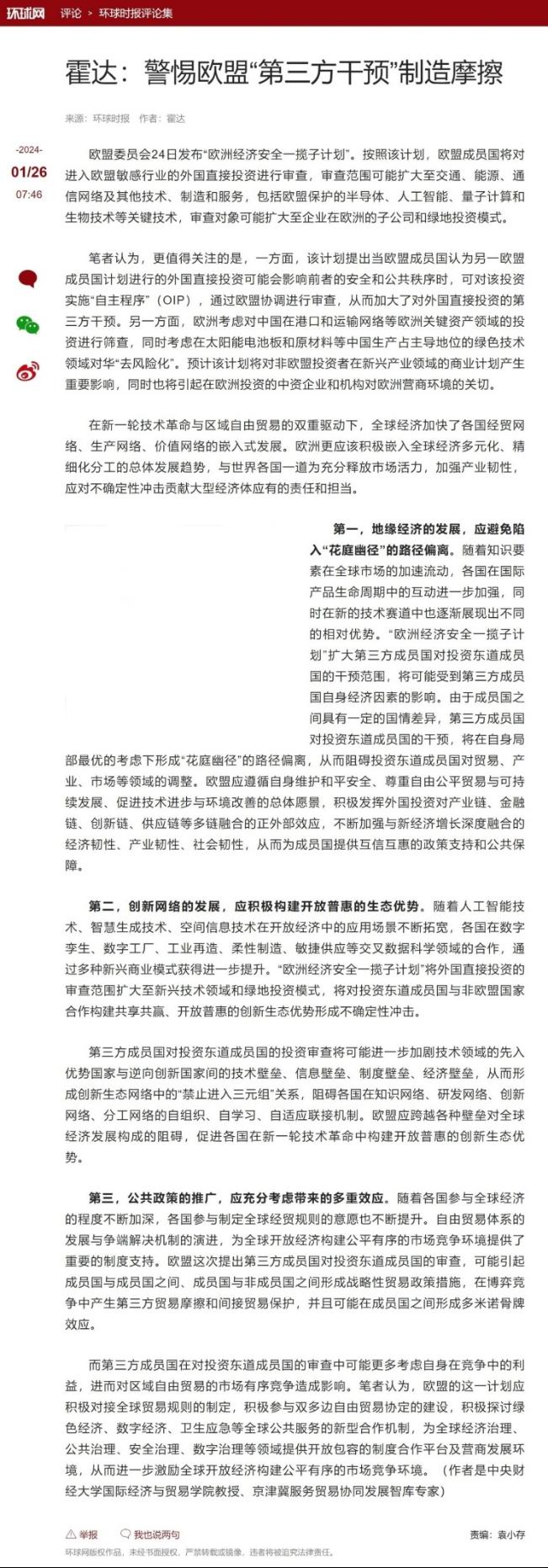 环球网1月27日环球评论