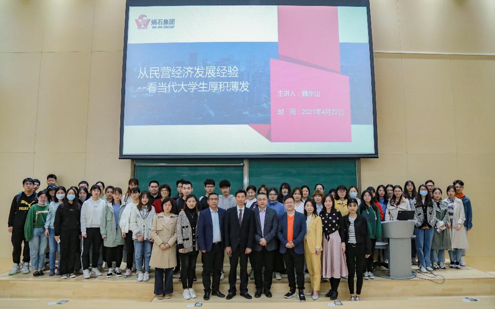 杨武副书记对讲座进行了点评。杨武副书记认为魏董事长的讲座是一堂生动的思政课与职业规划课。娲石集团的发展历程是波澜壮阔的党史、改革开放史的一个缩影,正是因为有娲石集团这样能够顺应时代潮流,不屈不挠、锐意改革、不懈奋斗的企业,我们的国家才能取得今天举世瞩目的成就,正是有这样的企业,我们更加坚定了对中国特色社会主义道路的认同。杨武副书记指出,魏董事长所展现的敢于担当、锐意进取、艰苦奋斗的中国企业家精神与强烈的家国情怀和社会责任感值得我们学习。杨武副书记勉励同学们,要向魏董事长学习,坚定理想信念,练就过硬本领,昂扬奋斗精神,力求知行合一,将自身发展的“小我”融入党和国家发展的“大我”中,为建设社会主义现代化强国、为中华民族伟大复兴贡献自己的力量。