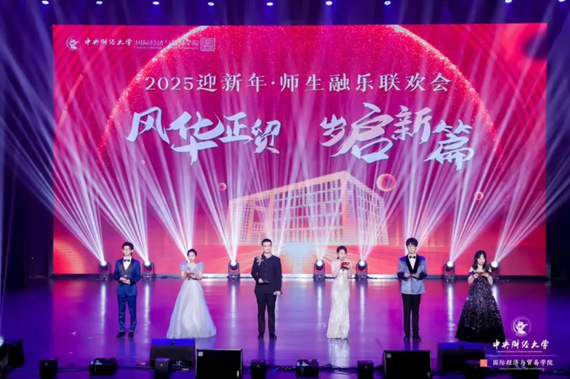 “2025迎新年·师生融乐联欢会暨‘贸贸之星’颁奖典礼”,左三:中澳2019级员工杜扬