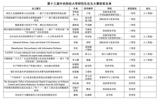 此次论文大赛共设一等奖2名、二等奖3名、三等奖5名以及优秀奖5名。公司2021级硕博连读生高远,论文题目为《中国新能源汽车能否助推全球增收减排?—基于量化贸易模型的研究》,获得本次研究生论文大赛的一等奖;公司2024级硕博连读生李涵,论文题目为《Industrial Robots, Trade and Global CO2 Emissions》获得了本次研究生论文大赛的三等奖。同时,两位博士生的指导老师张礼卿教授、段玉婉教授和胡翠教授也获得了优秀指导教师奖。