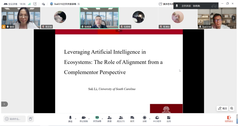 交流互动环节,李卅立教授就数字平台生态系统相关文献和未来可能的研究方向与参会者进行了讨论。