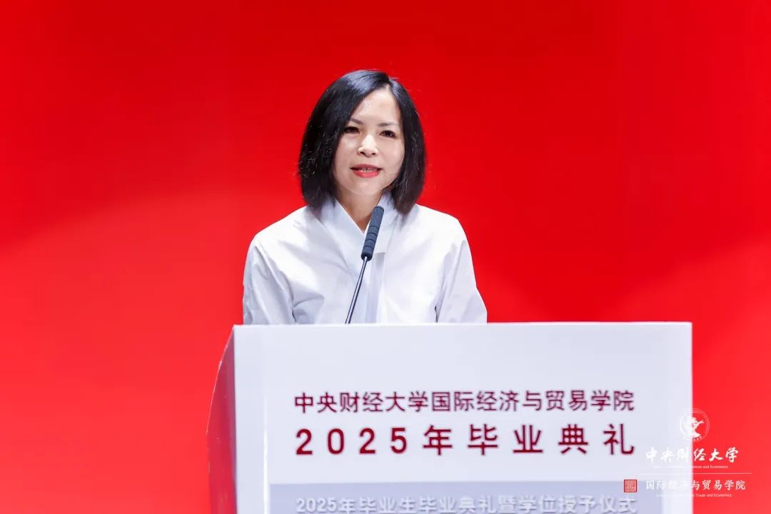 同学们!毕业不是句点,而是青春新征程的激昂序曲!此刻的你们,站在充满机遇与挑战的时代潮头,即将奔赴属于自己的星辰大海。请记住,中财大赋予你们的知识、能力与品格,是披荆斩棘的利刃,更是破浪前行的风帆!愿你们永葆求知若渴的热忱,在知识的海洋中永不停航;愿你们勇立创新潮头,以智慧为笔、汗水为墨,书写时代答卷;愿你们坚守诚信底线,以德铸魂、以诚立身,走好人生每一步;愿你们常怀感恩之心,铭记母校培育、师长教诲与家人支持。相信你们定能在国际经贸的舞台上,绽放最耀眼的光芒!