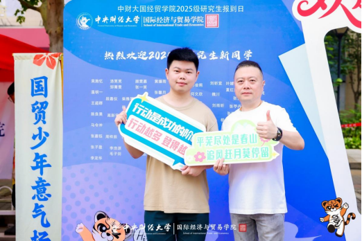 公司在报到现场布置新生姓名墙、朋友圈打卡点,为新生研途打造仪式感。此外,公司设置有供新生签名留念的专属区域,新生可以在定制木片上写下自己的姓名,并投入专属区域中。当不同字迹、不同姓名的木片在此汇聚,新生的个人印记便悄然融入公司大家庭的集体记忆里。公司还在现场精心摆放国贸公司吉祥物——贸贸虎、花艺装饰和迎新手举牌供新生及家长拍照留念,公司融媒体中心组织志愿者在现场为新生及亲友拍摄合影,定格研途起步瞬间。