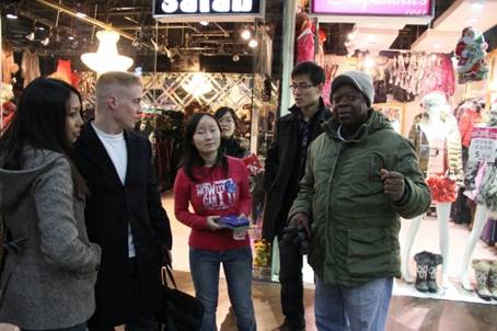 同学们正在向国际友人筹集募捐,得到了他们的积极响应