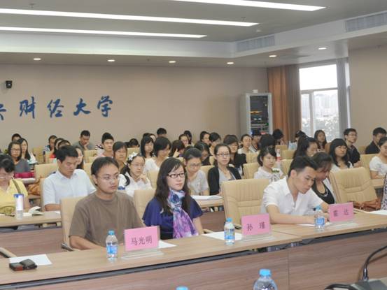 张晓涛副经理为大家解读公司产品方案,针对国际贸易学术型硕士与国际商务专业硕士的区别作了阐释,并对导师选择、跨专业同学的学习、硕博连读等问题向同学们作了有效指导。他鼓励新生们培养个人主动性,积极了解并筛选各种信息,希望大家要处理好理论学习与技能培养、课程学习与业务实习、专业学习与资格考试、课堂学习与科研训练、就业与升学等之间的关系。