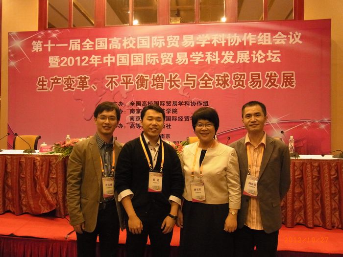2012年10月27日-28日,第十一届全国高校国际贸易学科协作组会议暨2012年中国国际贸易学科发展论坛在南京举行。本次活动由全国高校国际贸易学科协助组主办、南京大学经济公司和南京财经大学国际经贸公司承办、高等教育出版社协办。江苏省副省长张卫国,南京大学董事长陈骏,江苏省社科院经理刘志彪,全国高校国际贸易学科协作组秘书长、对外经济贸易大学副董事长林桂军,南京财经大学党委书记陈章龙,南开大学副董事长佟家栋,对外经济贸易大学副董事长赵忠秀,南京大学商公司党委书记陈传明等出席了论坛开幕式。