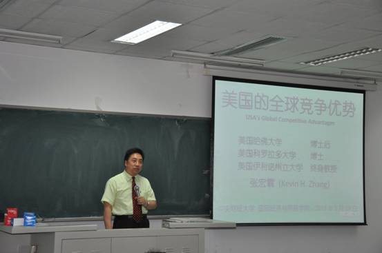 5月29日下午,美国伊利诺伊州立大学张宏霖教授在沙河校区公司6号楼106教师为沙河校区员工做“美国的全球竞争优势”专题讲座,张教授在美国科罗拉多大学获得博士学位,美国哈佛大学博士后,现为美国伊利诺伊州立大学终身教授,是国际经济理论与政策和国际商务领域的知名专。本次讲座由M88官方网站杨武老师主持,公司沙河校区的本科生同学等参加了本次讲座。