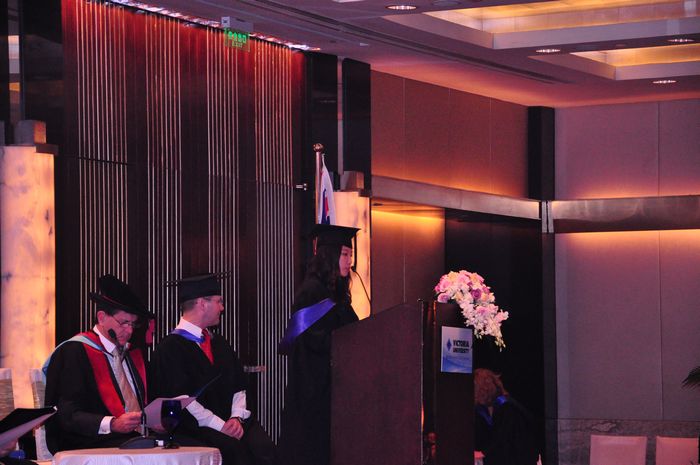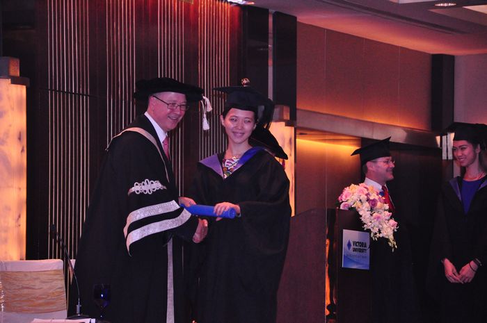 维多利亚大学董事长Peter Dawkins先生向毕业生颁发学位证书