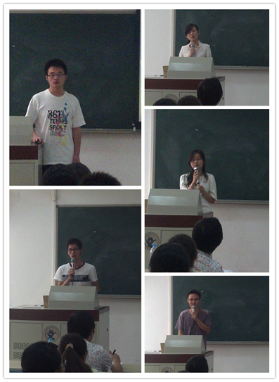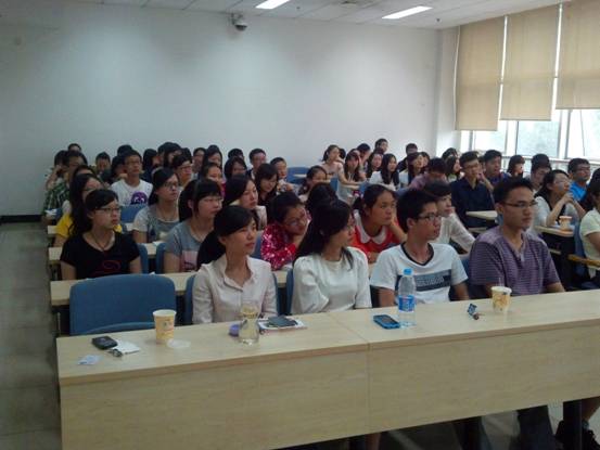 杨明建同学分享关于论文发表、实习、学术竞赛等方面的经验和建议。谢慧颖同学重点分享了研究生阶段的学习方法和心得,林贺信、初晨和薛佳川同学分别就志愿活动的参与、课内课外活动的平衡、哈佛商业评论大赛及其他精彩赛事等新生们关心的话题发表了自己独到的见解,提出了中肯的建议。全体新生仔细聆听优秀研究生老生代表们的学习、科研和生活领悟,他们被“拥有自己的特色——拥有别人拿不走的东西”的深刻思考、良好的学习习惯和积极向上的生活态度深深感染、激励和启迪。