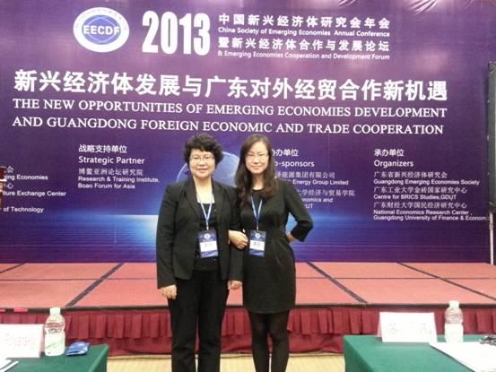 2013年11月11-12日,公司唐宜红经理和孙瑾老师在广州白云国际会议中心参加了首届中国新兴经济体研究会年会,会议主题是“新兴经济体发展与广东对外经贸合作新机遇”,本次会议由中国新兴经济体研究会主办,广东省新兴经济体研究会和广东工业大学等单位承办。在本次年会上,唐宜红经理当选中国新兴经济体研究会常务理事,孙瑾老师关于亚洲经济合作与发展模式的论文收录到本次年会的会议论文集里。