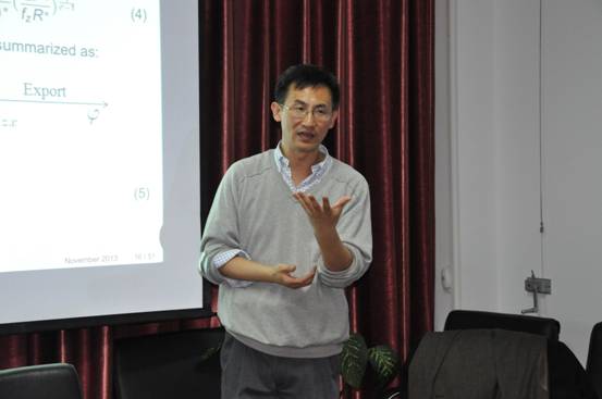 11月22日下午4:00-5:30,著名贸易学者、清华大学经济管理公司和美国俄克拉荷马大学鞠建东教授应邀来公司做了关于“A Unified Model of Structural Adjustments and International Trade: Theory and Evidence from China”的学术讲座。鞠教授利用1999-2007年中国工业企业数据揭示了我国生产结构调整和出口增长中出现的一个“悖论”现象,即中国制造业生产的资本密集度越来越高,但同时期的出口却表现出更高的劳动密集型特点。为了从理论上解释这一现象,鞠教授与其合作者开创性地将Melitz(2003)的企业异质性模型引入了Dornbusch, Fisher and Samuelson’s (1979,1980)的李嘉图和H-O连续统模型来分析产业内企业分布变化和资源在不同产业间的配置变动。理论模型的预测结果得到了中国企业数据很好的支持。讲座期间,公司教师和研究生与鞠教授就模型构建、政策建议和国际贸易研究前沿等话题进行了深入探讨,深受启发,对鞠教授严谨的治学态度、高度的研究热情、精致的模型设计以及对中国经济发展的深刻把握都留下了深刻印象。