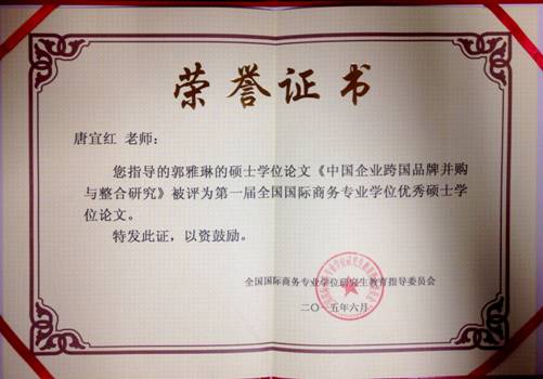 公司国际商务专业学位优秀硕士论文获奖证书