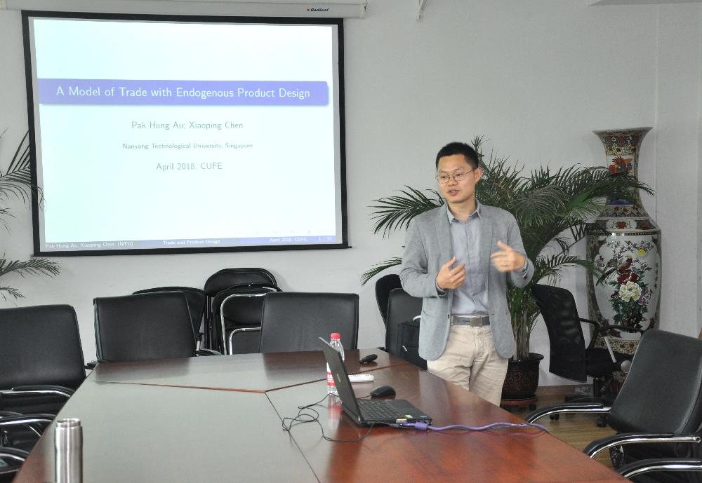2018年4月27日下午,新加坡南洋理工大学陈晓平博士访问公司M88官方网站,并为公司师生做了主题为“A model of trade with endogenous product design”的学术报告。公司经理助理林发勤副教授等20余位师生参加。