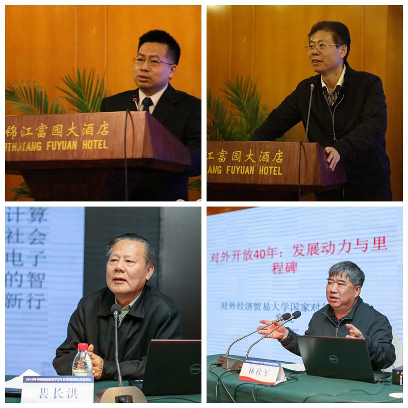 大会邀请了四位专家发表了主旨演讲。阮宗泽研究员的发言题目是“大变局下的中美关系”。他总结了中美关系发展的五个前所未有的变化,并对如何防范中美关系走向新冷战及未来中美关系的前景提出了自己的观点。刘日红副主任的发言题目是“我国对外开放环境新变化”。刘主任将中国改革开放四十年划分为四个阶段并总结了不同发展阶段的特征。随后,他提出中国未来面临的开放环境发生了三大剧烈变化,同时他也指出全球化互利共赢的趋势没有变、中国在全球格局中的上升势头没有变、中国对外开放的方向不会变。裴长洪研究员的发言题目是“中国经济新趋势与外贸发展新优势”。他从数字经济、高端制造与智能制造、部分的公共品供给引入市场机制形成特殊产业三个角度分析了中国产业业态的发展趋势。湾区经济的集聚与城市群的崛起和乡村振兴是中国未来区域形态的发展趋势。最后,裴教授总结了中国未来外贸发展的六大新优势,包括高速连通的社会分工网络、跨境电子商务与平台企业、中欧班列和海外分销、资本技术密集型优势正在集聚、服务贸易增长后发优势明显、两个开放新高地。林桂军教授的发言题目是“对外开放40周年:发展动力与改革里程碑”。林教授总结了旧体制的基本特征,并认真梳理了中国对外开放的八大里程碑事件,提出了中国对外开放的矛盾特征,特别提出了中国对外开放中面临的对外开放、国内政策自主权和世界市场的“三元困境”,引起了与会代表的广泛思考。