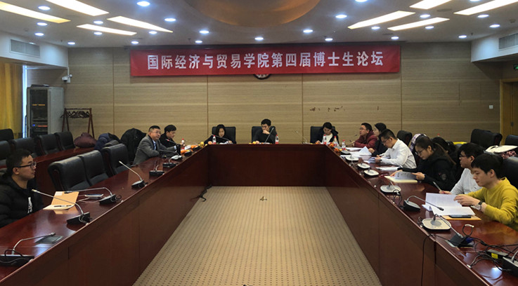 博士生张晓芳、刘亿、易云峰和顾丽华四位同学从研究动机、文献脉络、研究创新、方法论证等各个方面分别宣讲了自己的博士学位论文《贸易自由化与区域劳动力市场:异质性影响和机制》、《金融发展对我国对外直接投资的影响研究》、《FDI对城市职能专业化的影响研究——基于价值链分工的视角》、《智能制造对出口的影响研究》,针对每一篇学位论文,李瑞琴教授、梅冬州教授、胡翠教授、符大海副教授、段玉婉副教授、刘悦副教授和王立勇教授分别给予详细指导和具体修改建议,对论文的进一步修改和完善提供了极大帮助。