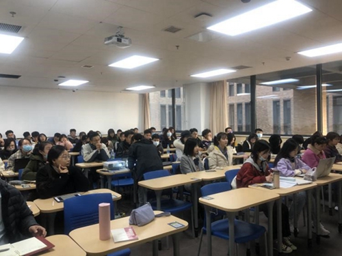 祝维龙老师作为一名经验丰富的一线研究生招生工作人员,以幽默风趣的语言,从“毕业后的选择,考研难不难,我们的现实情况,我该怎么办,祝福寄语”等五个方面,向同学们着重描述了新时代背景下攻读研究生的意义及发展前景,为大家理清了考研动机,讲清了报考流程,讲解了备考学习重点。以自身的考研经历出发,祝老师用翔实的数据和实例并结合国贸公司近年研考情况,深入地分析了当前考研政策,在如何择校选专业,如何规划复习时间等提出建议,最后祝老师鼓励大家尽早确定目标,处理好专业学习和复习备考的安排,并祝愿同学们圆梦中财。讲座中,同学们就考研报考和复习中遇到的问题等进行现场提问,祝老师一一给予详尽细致的回答。