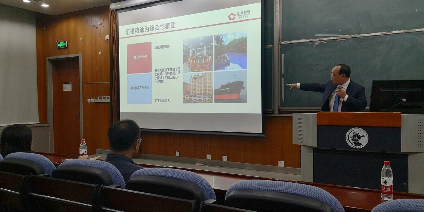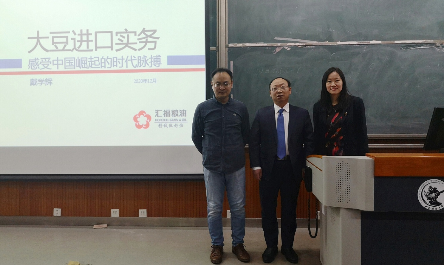 2020年12月1日,中国海事仲裁委员会仲裁员、汇福粮油集团副总经理兼总法律顾问戴学辉先生应邀做客M88官方网站,在沙河校区公司楼3号楼222教室为公司师生进行了题为“大豆进口贸易实务——感受中国崛起的时代脉搏”的讲座。这是公司“知行·至善”实践发展论坛的首场讲座,该论坛旨在邀请业界专家走进公司,讲中国故事,讲中国企业实践,以促进员工实践能力提升,知行合一,培养家国情怀。