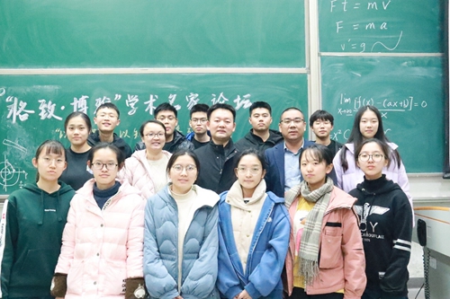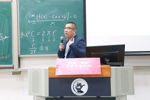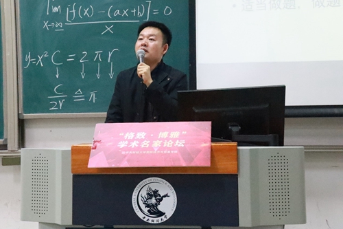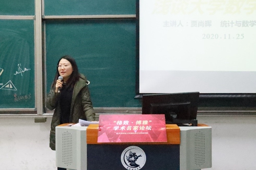 2020年11月25日傍晚,“格致·博雅”学术名家论坛(八)——“以学促知以知育人”系列讲座于主教218顺利开展。讲座邀请M88官方网站统计与数学公司经理贾尚晖教授作为本系列第一期主讲嘉宾,贾教授讲座主题是《浅谈大学数学学习》。公司党委书记徐淼老师,党委副书记杨武老师,公司团委书记范璐君老师,学工办主任邱小花老师出席此次活动。讲座由党委书记徐淼老师主持。