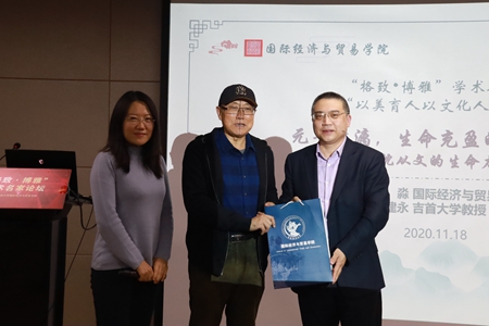 徐淼书记在主持活动时表示,在中华民族漫长的历史进程中,美育如影随形,让中国人的生命力不断积淀,并在改进展开的同时,成为我们国人自我完善、自我丰富的动力。作为高校,我们承载着文化传承与创新的重要使命,国贸师生更应当在这种文化大发展大繁荣的时代,在对外开放的历史潮流中,具备更高的文明程度、更健全的人格和更宽广的胸怀。我们要以大爱之心、大美之义来孕育大德之境。