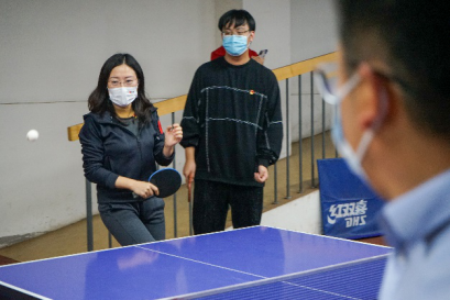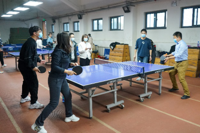 本次活动不仅注重在师生畅谈中解决问题,办好实事,还引导师生树立强身健体意识,坚定抗击疫情信心。疫情期间,公司积极落实国家及北京市防疫相关要求,将课堂转为线上进行。为鼓励同学们课余时间走下网络、走出宿舍、走向操场,在运动中调节心理情绪,加强体育锻炼,提高身体免疫力,支部双方展开乒乓球友谊交流赛。双方通过支部内自由组队的形式,进行乒乓球双打比赛,简单的热身之后三张球台同时开赛,场上球员厮杀正酣,场下观众呐喊助威。方寸球台上,搓削拧拉技巧纷呈,强攻严守瞬息互换。经过半个小时的激烈角逐,双方势均力敌,难分胜负,中澳项目第三本科生党支部师生组合最后以一球之差险胜。