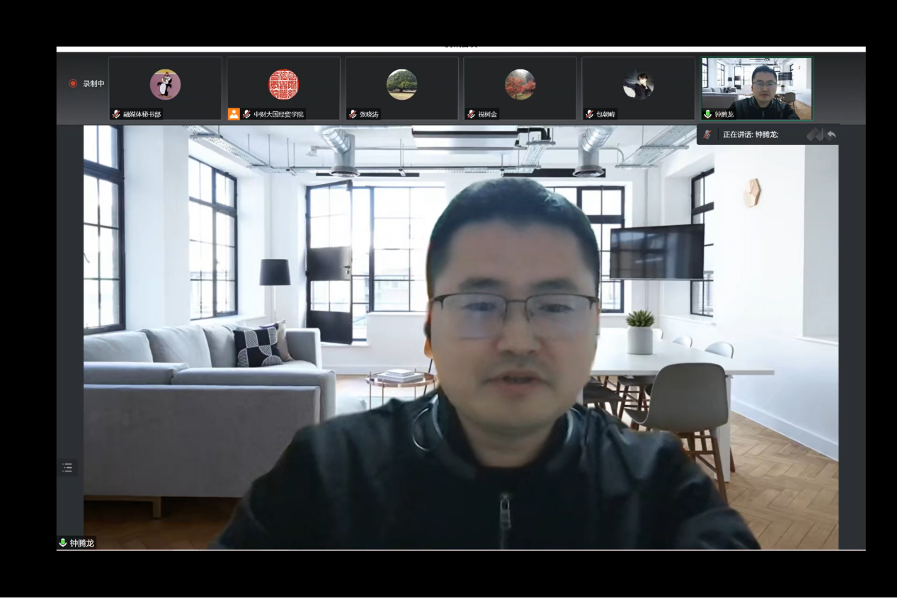 在总结和致谢环节,张晓涛经理对祝树金教授的讲座进行了简要总结,指出了在经济学研究中传承关系的重要性,并鼓励同学们要做前沿的研究,并赞同企业的决策异质性在微观企业研究中的重要性。之后,钟腾龙副教授通过生动的故事从学术、教学和生活三个方面回顾了师从祝老师的求学经历,毕业后更是与导师不断联系,在学术和工作上保持密切合作,并借此机会再次表达了对恩师的感激之情,并表态一定努力工作,报效祖国,进一步升华了本次讲座的“传承”主题。最后,张经理对祝树金教授对公司工作的支持表示感谢,并表达了对日后更多学术交流的期待。