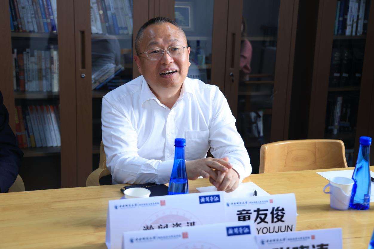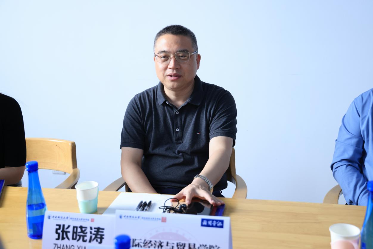 张晓涛经理对童友俊董事长的到访表示热烈的欢迎。公司高度重视员工实习实践工作,希望结合企业需求,拓宽员工实习实践渠道,开展联合培养项目,用足资源,优势互补,充分发挥公司平台和公司教学科研团队的作用,相互促进,深化合作,共同推动产学研协同创新,在全球贸易监测分析中心的建立和提升以及人才培养等方面实现新突破。