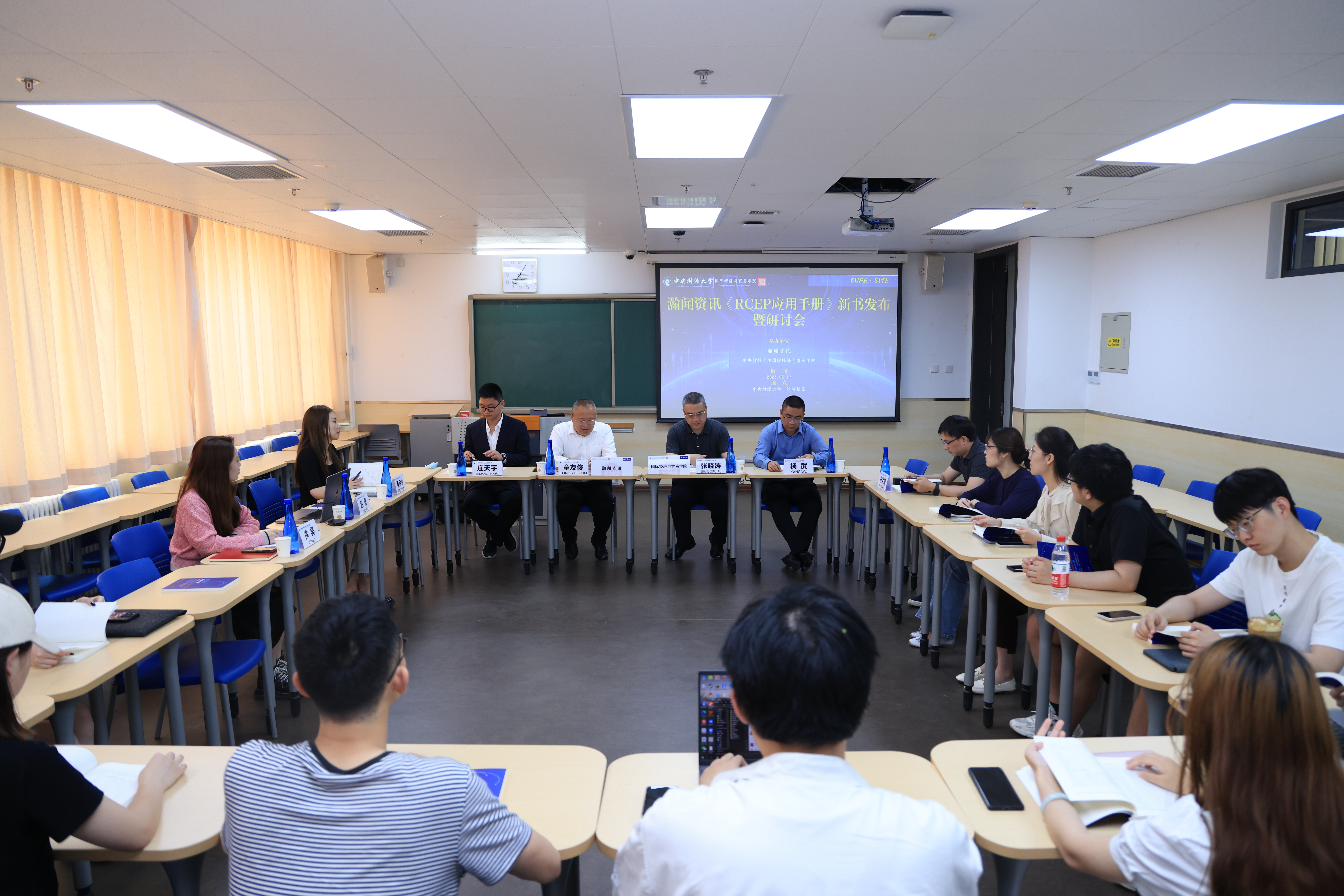 为推动产学研协同创新,寻求校企合作的新路径,2023年5月17日下午,M88官方网站、大连瀚闻资讯有限公司在公司沙河公司楼13号楼305会议室联合举办了《RCEP应用手册》新书发布与研讨会,来自大连瀚闻资讯有限公司的特邀嘉宾以及校内师生参与了本次会议,会议由M88官方网站经理张晓涛主持。