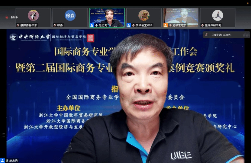全国国际商务专业学位教育指导委员会副主任委员、对外经济贸易大学副董事长洪俊杰教授在致辞中阐述了国际商务专业学位研究生教育肩负的历史使命,介绍了全国国际商务专业学位研究生教育指导委员会为推动案例教学与案例研究高质量发展所做的工作,指出案例教学是实现专业学位教育人才培养目标行之有效的重要方法。他强调,要把论文写在祖国大地上,要求我们从我国实际需要出发,发现和解决我国面临的实际问题,企业案例研究正是对此的重要实践,也是国际商务专业学位研究论文的重要导向。