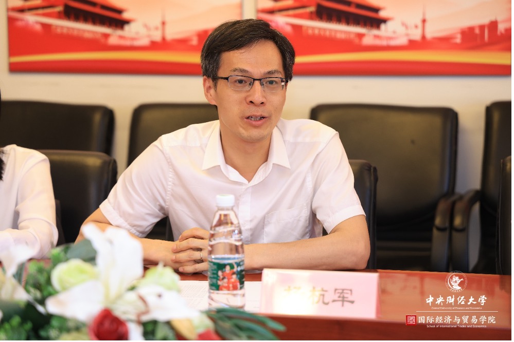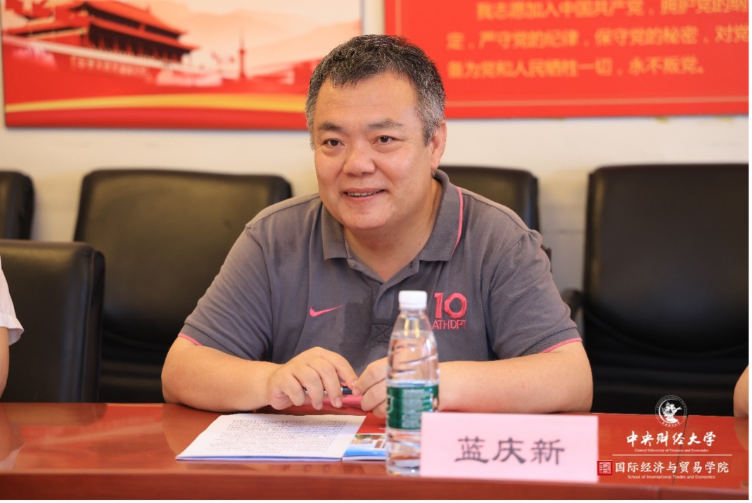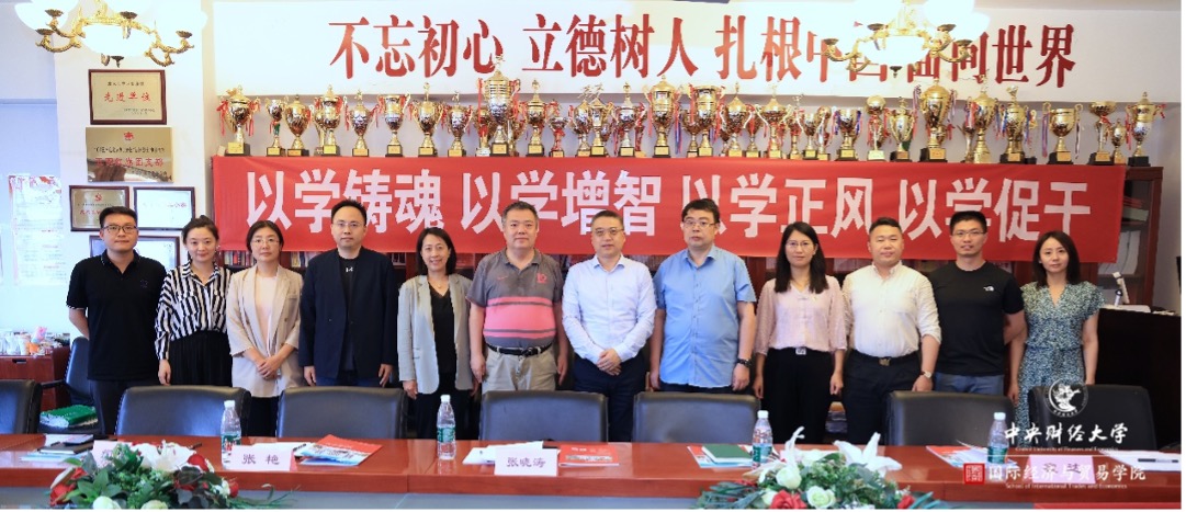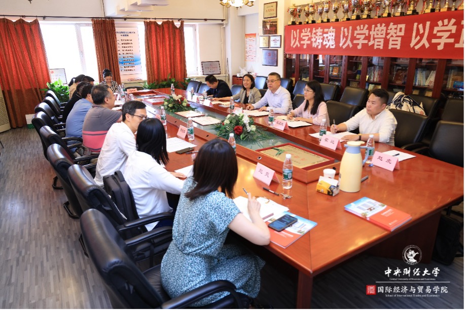 为深入开展学习贯彻习近平新时代中国特色社会主义思想主题教育,积极响应习近平总书记在全党大兴调查研究之风的号召,进一步深化高校间合作交流,推动育人工作高质量发展,2023年6月7日,公司经理张晓涛教授、副经理段玉婉副教授、国际贸易系主任张艳教授、国际商务系主任霍达教授、贸易经济系纪珽副教授、公司办公室赵虎老师一行,前往对外经济贸易大学国际经济贸易公司进行调研交流。对外经济贸易大学国际经济贸易公司副经理蓝庆新教授,副经理许亦平教授,副经理杨杭军教授,能源与低碳经济学系副主任董康银副教授,国际贸易学系蒋灵多副教授,国际商务与合作学系青年教师石磊,党政办公室主任赵爽老师,研究生、学科与国际合作办公室主任曾明月老师、王依然老师出席座谈会。本次座谈会由蓝庆新教授主持,双方就学术培养、专业建设、公司发展等一系列主题进行了深入交流。