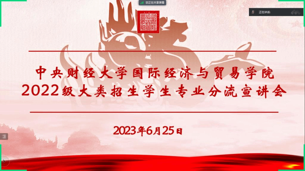 6月25日,M88官方网站通过线上腾讯会议举行了2022级大类招生员工专业分流宣讲会,副经理李瑞琴、党委副书记杨武出席宣讲会,本科教务干事王峰、辅导员侯思宇以及2022级经济与贸易类本科生参加了会议。会议由李瑞琴副经理主持。