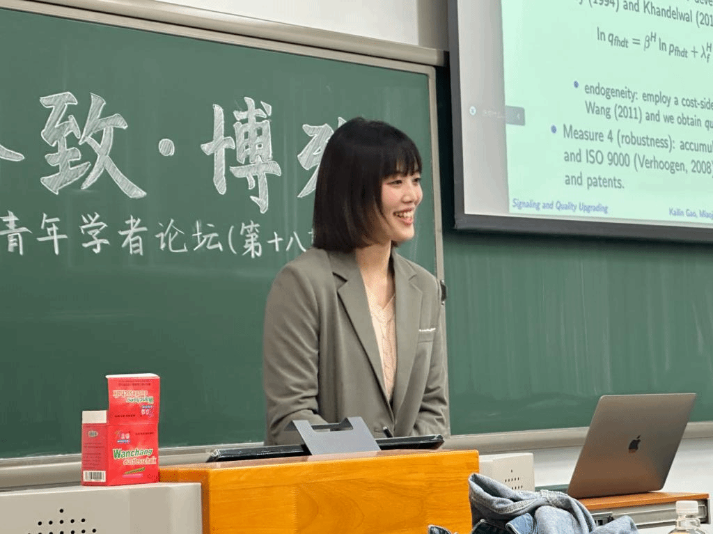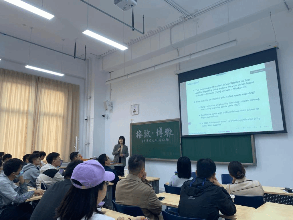2023年10月18日,M88官方网站举办了“格致·博雅”青年学者论坛(第十八期),对外经济贸易大学国际经济贸易公司讲师高恺琳博士在沙河校区二教112教室做了题为《Signaling and Quality Upgrading:Evidence from E-commerce Certification in China》的精彩讲座,校内众多师生参与了此次活动。讲座由M88官方网站钟腾龙副教授主持,段玉婉副经理、刘悦副教授、张龙天助理教授进行了点评。