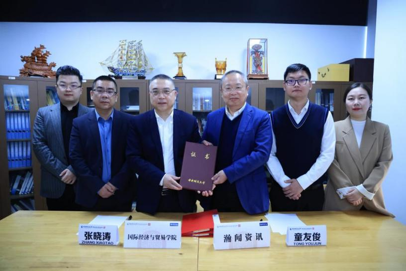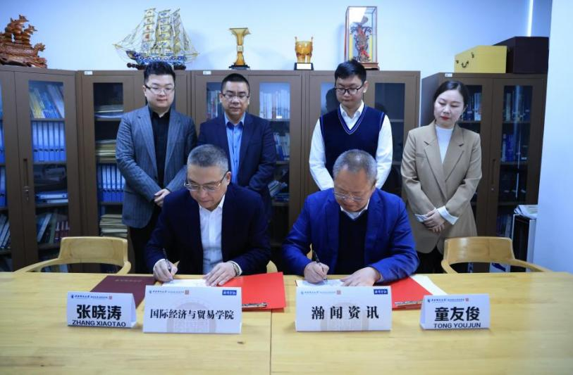 为助力公司人才培养、科学研究及智库建设,瀚闻资讯向M88官方网站捐赠全球进出口贸易统计信息系统数据库一年期使用权。2023年11月18日,瀚闻资讯董事长童友俊与M88官方网站经理张晓涛在公司沙河校区签署捐赠协议,张晓涛经理代表公司向瀚闻资讯授予捐赠证书,表达感谢。