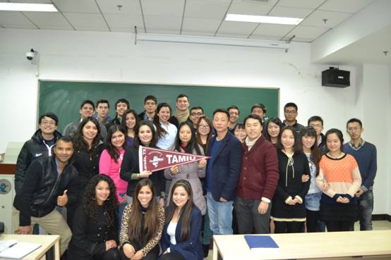 此次交流由M88官方网站的霍达老师主持。M88官方网站刘春生副经理首先致欢迎辞。M88官方网站的赵盼盼和林珈旭就中国经济增长结构的转变和中美贸易关系的发展作了题为’Growing like China’的报告。美国德州农工国际大学的Anthony Stahl和Mario A. Vargas介绍了北美自由贸易区(NAFTA)在北美地区能源、制造、物流等行业中的重要作用及其对于边境地区的商贸活动产生的积极影响。同时Laura Chapa和Gloria Conde就公司的专业结构、学位设置以及校园环境进行了介绍。此次交流还就中美经济、两国文化、职业发展等问题进行了交流。