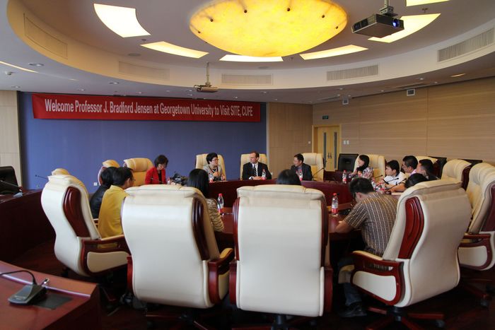 2012年5月16日下午,国际著名经济学家美国乔治敦大学(Georgetown University)布拉德•杰森(J. Bradford Jensen)教授访问公司,陪同来访的还有毕业于乔治敦大学的上海财经大学教师余智博士。