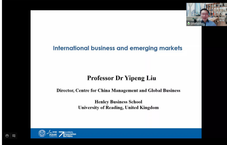2021年10月16-17日,M88官方网站特聘请英国雷丁大学刘毅鹏教授为公司国际商务硕士专业学位研究生开设在线短期课程“International business and emerging markets"。本次课程是通过腾讯会议平台开展,面向公司2021级国际商务硕士专业学位研究生。经理张晓涛、国际商务系教师蒙双、研究生等共计60余人参与本次课程。本次课程得到公司“M88官方网站引智项目”支持。