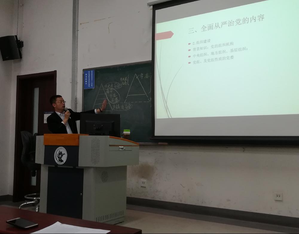 接下来,李扬老师详细的阐述了从严治党的内容。一是找准着力点,积极反腐斗争工作。二是加强组织建设,李扬老师详细的介绍了乡镇委员会、县委、省委和中央委员会等的职能与区别,帮助同学们更好的理解中国共产党的组织结构。三是加强制度建设,阐述了以“1+4”为基本框架的党内法规制度体系。四是加强思想作风建设。五是增强本领。