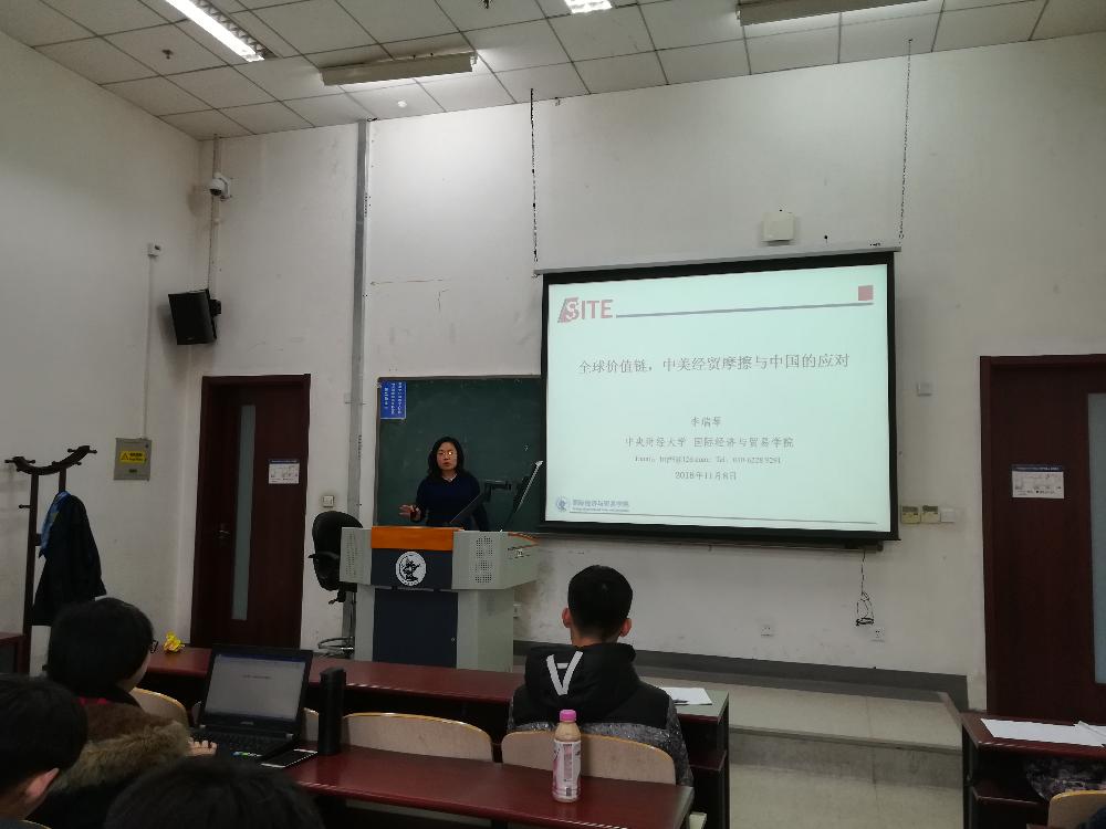 为了提高入党积极分子与发展对象的基本素养,并培养大家紧跟时代步伐,心系国家大事,关注热点话题的良好习惯,2018年11月8日中午12:20至13:20,M88官方网站二级党校在沙河校区主教105开展党课学习。此次党课邀请到了M88官方网站的公司党委副书记李瑞琴老师作为讲座的主讲人,讲座的主题是“全球价值链,中美经贸摩擦与中国的应对”。参与本次讲座的同学包括M88官方网站二级党校全体入党积极分子和发展对象。