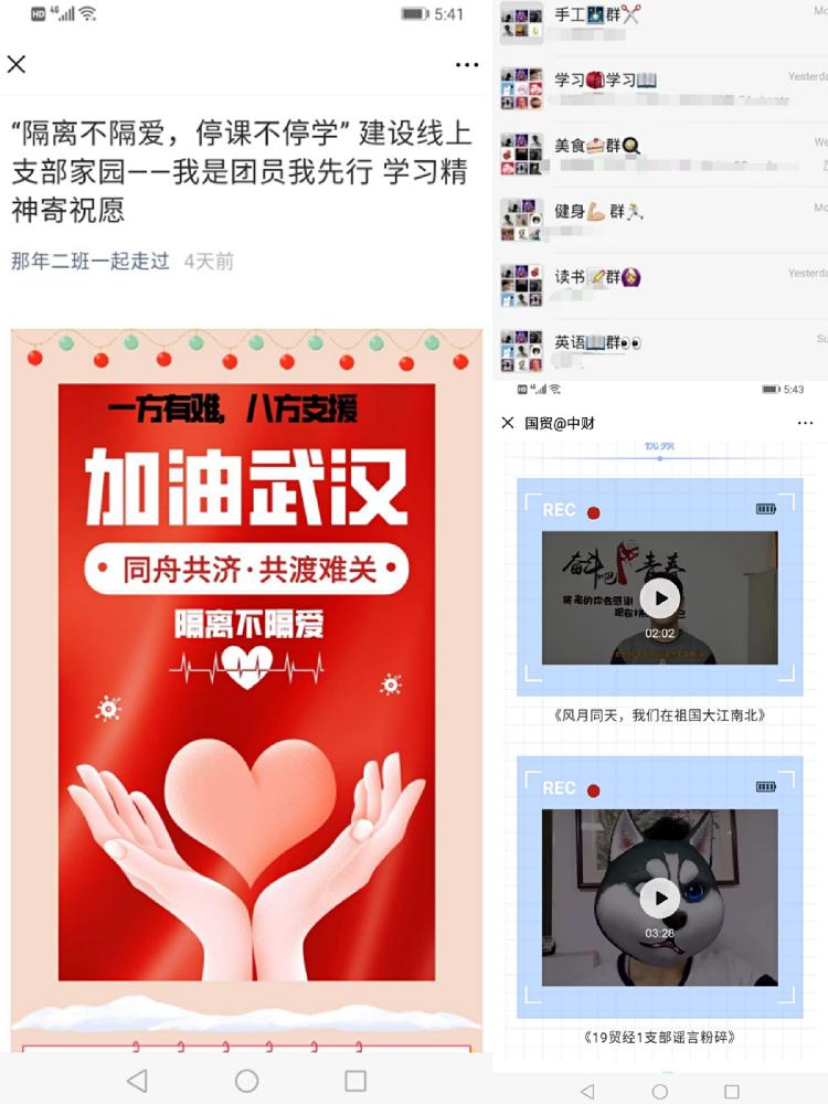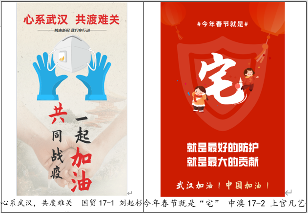 在防疫攻坚的关键时期,M88官方网站面向32个班团支部开展“线上聚力,同心抗疫”主题教育活动,充分应用新媒体平台,融入线上支部会、网络公开课、读书日打卡、录制云视频、防疫我承诺等多样化活动载体,覆盖全院一千余名员工,共计开展128项活动,引导国贸学子厚植爱国底色、担当时代责任,筑起战“疫”的青春长城。